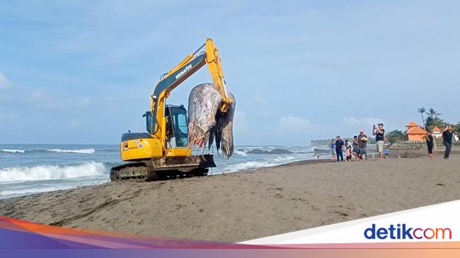 Operator alat berat sempat kesulitan memindahkan bangkai ikan besar itu ke pinggir pantai. Sebab kondisi bangkai sudah hancur membusuk. Bahkan ekor nyaris putus. "Sudah dikubur di pantai pakai eskavator jam 9 pagi ini," pungkas Darta.