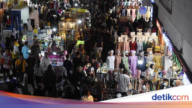 Jakarta - Jelang Lebaran, penjualan busana muslim di Blok B Pasar Tanah Abang, Jakarta, mulai ramai. Suasana di dalam pasar bak lautan manusia.